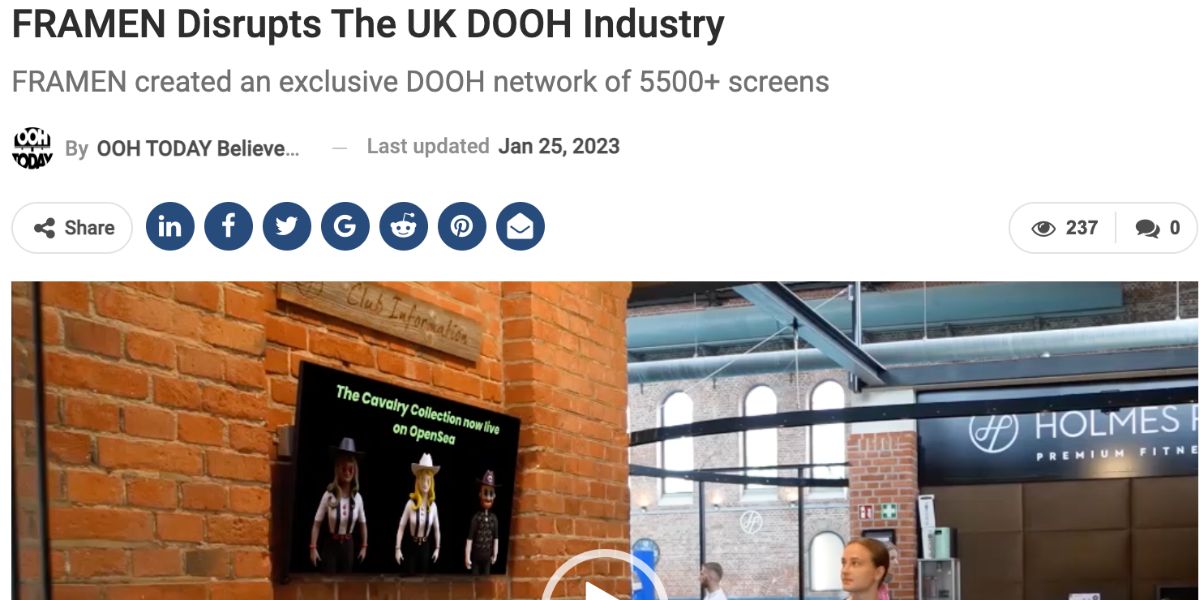 I created the press release using a attention-grabbing headline, body text with enticing and informative language and a quote from FRAMEN’s Vice President of the UK. As FRAMEN doesn’t have a media database, I created a template LinkedIn message and email which could be tailored to each publisher to increase chances of building a rapport and getting the press release picked up. Through my outreach efforts and ability to build connections, I pitched the press release to OOHtoday.com (one of the leading news websites for the OOH industry) and they published my press release.