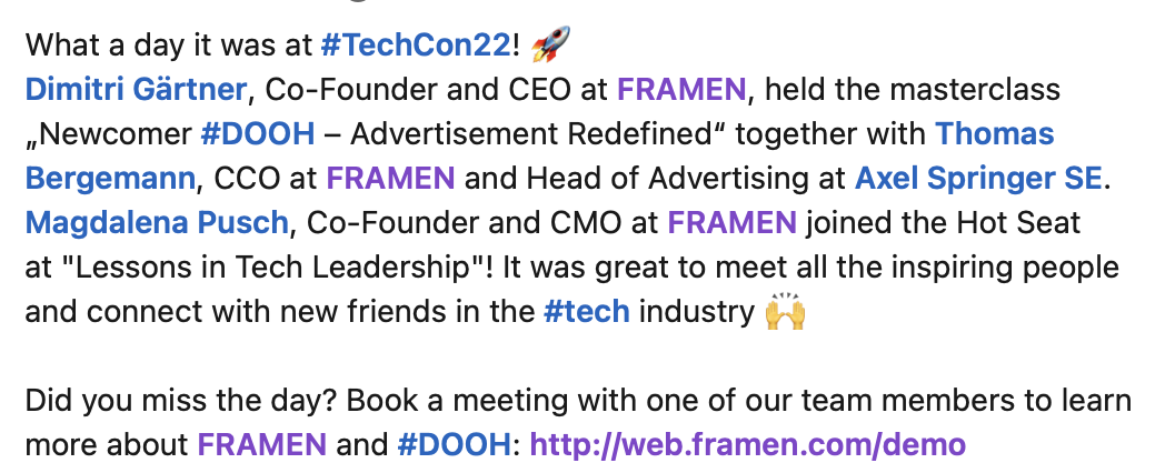 Collaborative CMO Dinner Event: FRAMEN x Gründerszene post – LinkedIn
