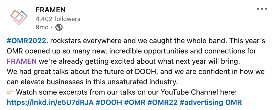 OMR 2022 Advertising Tradeshow post – LinkedIn